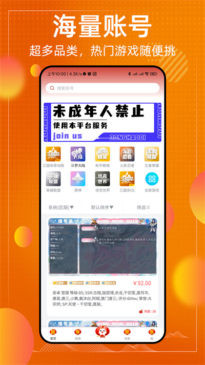 懂号弟账号交易服务为大家带来一个更安全的游戏账号交易的平台,从中可以看到有着专业、规范化的交易平台,在对于游戏账号的交易上更加安全,从中可以看到各种热门游戏的账号选择,带来不同等级的账号交易。