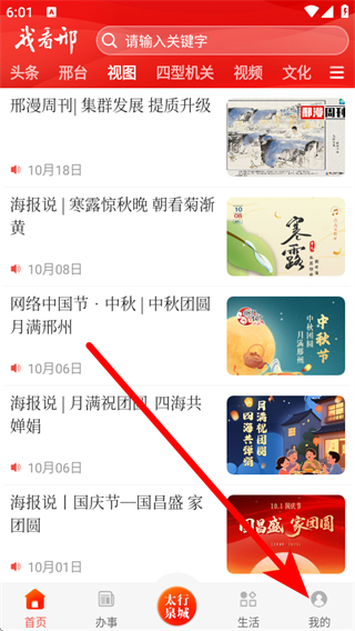1、在新邢台的首页,点击底部我的按钮,进入个人的页面。