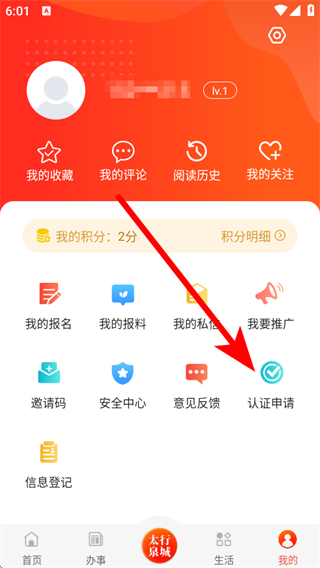 2、在个人的页面,点击认证申请,进入申请认证的页面。