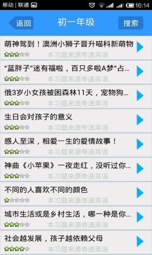 该软件在激发学生兴趣的同时,着重立足于培养学生良好的阅读习惯和阅读技巧方法,让学生轻松提高英语成绩。该平台每天为各年级提供1篇发生在本周内甚至当天的最新英语时文,只要学生每天坚持阅读,一个月下来,在潜移默化中就能养成良好学英语阅读习惯。
