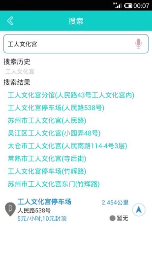 查找车位模块不仅为用户提供了基于位置的停车场搜索,而且提供了关键字搜索以及地名搜索,方便用户查找车位。