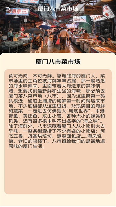 对于现在的菜市场的推荐中,平台根据当地人们的推荐进行集中的整理,为大家在对于菜市场的找寻上带来一个更详细的内容讲解,大家在这里可以找寻到更多的当地的美食科普,也可以看到不同国家的口味变化。