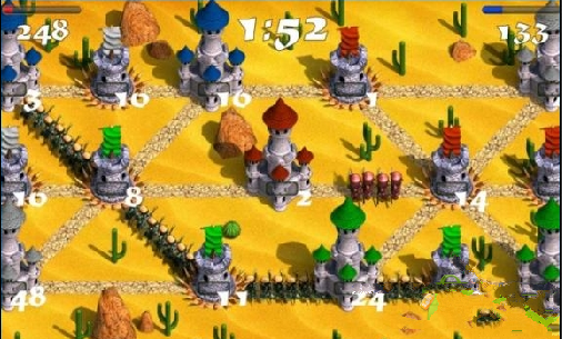 征服者(Conquerors ),一款欧式风格的塔防游戏,通过军团之间的战争展开,锤炼你的士兵,放置合理位置进行攻击,就是最关键的地方,好好把握吧。游戏中,玩家将控制蓝色军队,对红色以及无人的城堡发动攻击。如果拿下城堡,那么将会不断的生产士兵,这样就有更多的军队可以发动。当把所有的城堡都占领后,那就过关了。感兴趣的玩家还是可以下载试试的。