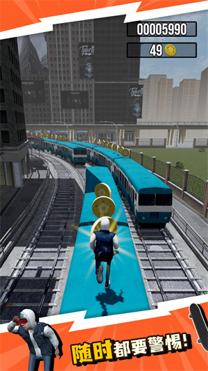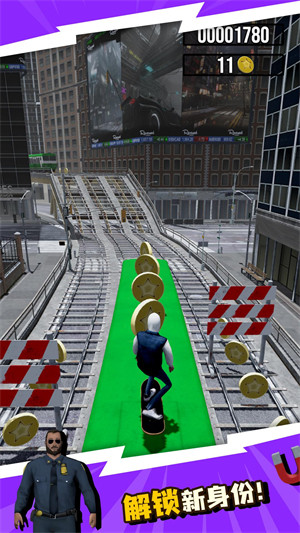 全民跳跳跳手游是一款跑酷冒险游戏,玩家可以在不同的铁轨上进行跑酷,在游戏的过程中玩家不仅需要努力的向前跑,还需要躲避铁轨上的来往车辆,玩家还能吞噬铁轨上的道具和金币哦,金币可以用来兑换金币,提高自己的跑酷效率。