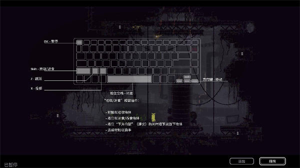 捡/吃/储存/吐出:单按可以捡起物品,蛞蝓猫可以同时拿两个物品,不可以同时拿两个铁杆。(红蛞蝓猫似乎可 以)长按对于食物来说是吃掉,对于小物品来说是储存,手上只有一个东西且有储存物时会将物品吐在手上,两 只手都有东西会吐在地上。连按两下会交换左右手的物品。