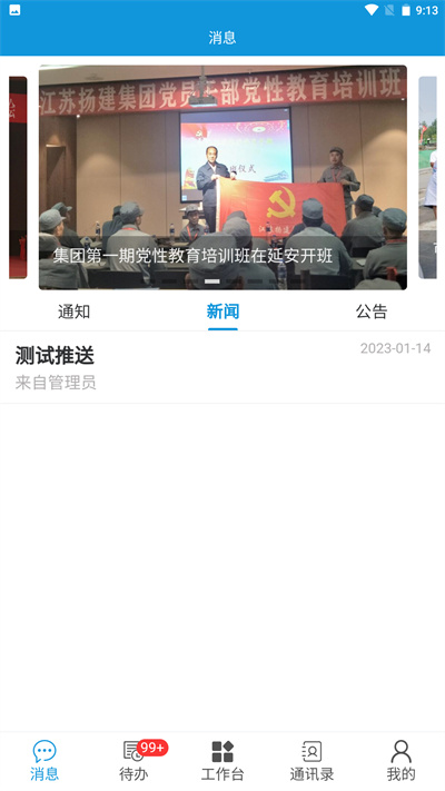 1、消息:实时推送、展示集团部门展示消息(通知、新闻、公告)