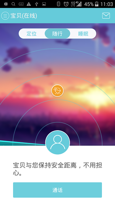 全新开发的蓝牙随行模式,能近距离的监控儿童手机,一旦孩子与父母超过安全距离,手机客户端会进行提示,以防止孩子在人多拥挤的地方走失。