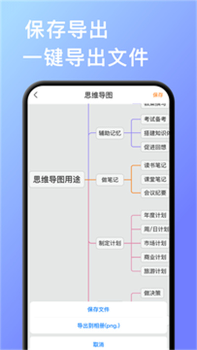 3、可以一键导出制作的导图内容,选择自己需要的格式进行一键导出即可。