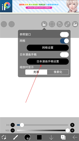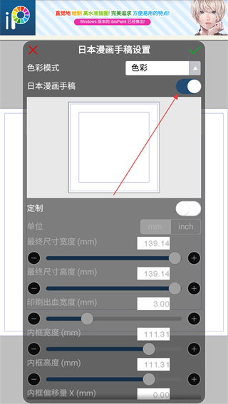 4、进入设置页面之后,点击日本漫画手稿的开关即可。