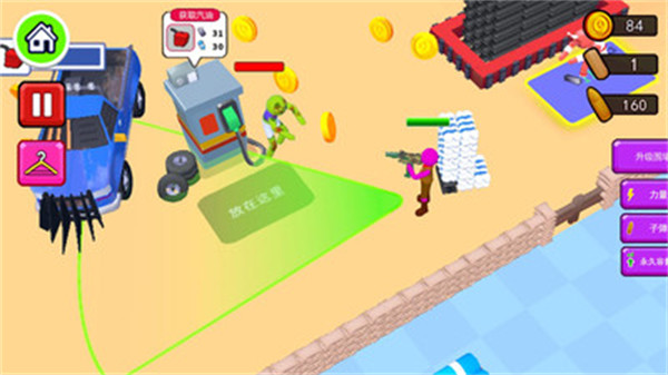 僵尸猎场是一款冒险逃生游戏,游戏中玩家可以自由的在地图中探索,但是玩家需要及时躲避僵尸的攻击,还可以使用道具对僵尸进行有效的攻击,需要解锁道具就需要寻找足够多的物资,快来换取汽油,逃离这个地方吧!