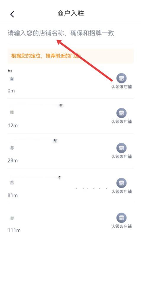 3、在商户入驻页面的输入框中填写自己店铺的名称,按提示完成后续店铺信息提交与审核。