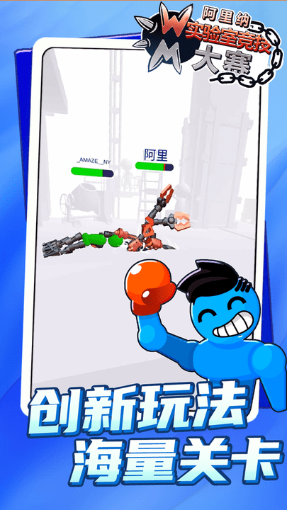阿里纳实验室竞技大赛手游是一款非常有趣好玩的手游模拟格斗游戏。游戏中玩家将控制角色体验模拟拳击格斗游戏,画面采用开通画风,人物形象也是卡通橡胶人,看起来非常的有意思,感兴趣的朋友,请下载试试吧!