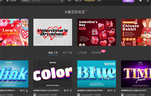 用户可以在该平台上自由下载各种各样的设计素材、设计元素、设计模板、样机模板网页模板、ppt模板等用户平时设计所需要用到的素材。