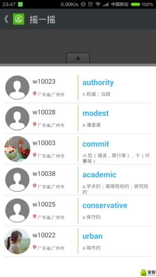 6、“摇一摇”实时探知全中国某个人正在学习的单词。