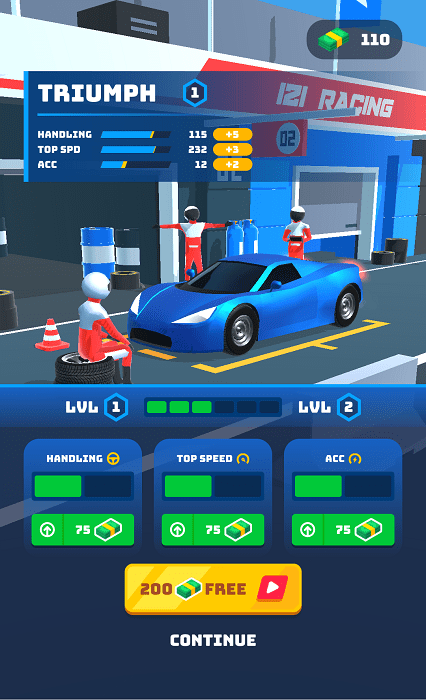 1、每次完成游戏都会获得金币,用于购买和升级新车辆;