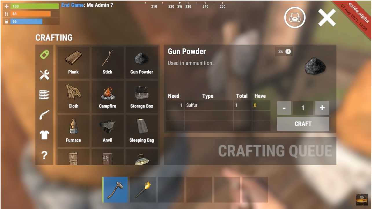 - 添加了新物品(金属装甲,三角基础和地板,Medkit,绷带,燃油瓶,动物脂肪);