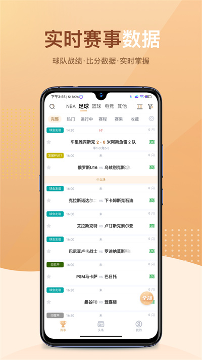 +全球知名足球赛事高清直播,手机端随时收看提前了解比赛前瞻和阵容状态