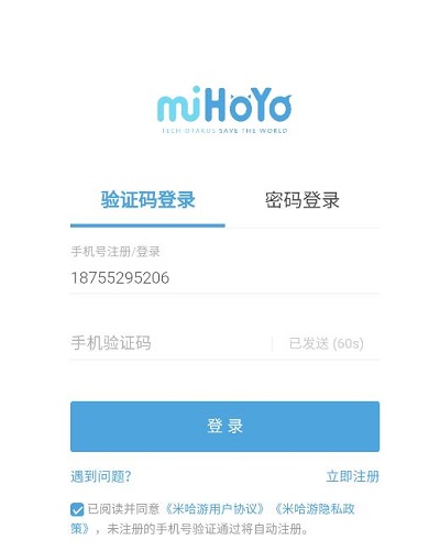 1、打开软件之后,输入自己的米哈游通行证,或者是手机号通过验证码登录;