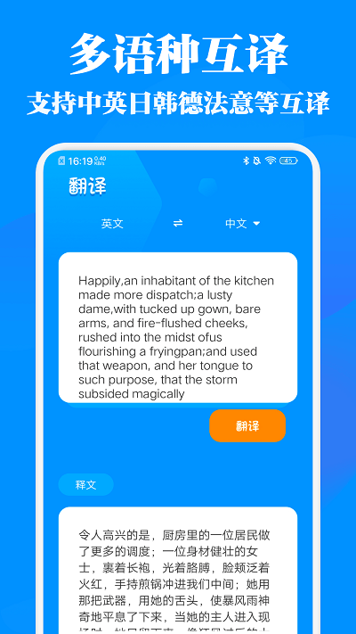 3.随时根据用户提交的需求进行翻译,1分钟内解决所有翻译需求。是您学习、工作、出国旅游必备的英语翻译应用。