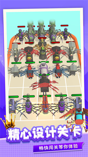 蜘蛛生存模拟手游是一款蜘蛛生存游戏,在游戏中玩家需要在一个彩虹火车怪物的世界里进行生存,游戏里面有很多很吓人的怪物,玩家需要从易到难解决各种关卡,聚集自己的蜘蛛小队,还能合并怪物来增强自己的力量,如果你感兴趣的话,就快来玩玩看吧!