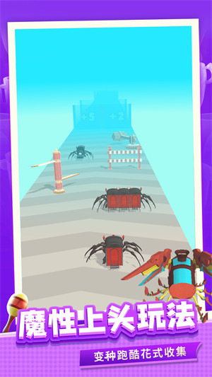 蜘蛛生存模拟是一款超级流行的冒险游戏,蜘蛛战士会在你的控制下无畏地向前冲刺,当你成功击败挡住你的怪物时,你可以获得长久以来想要的奖励,让更多的玩家兴奋不已,除此之外路上的道具还可以被你捡到帮助自己成功实现目标。