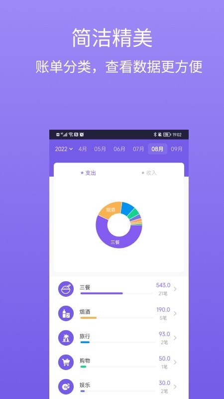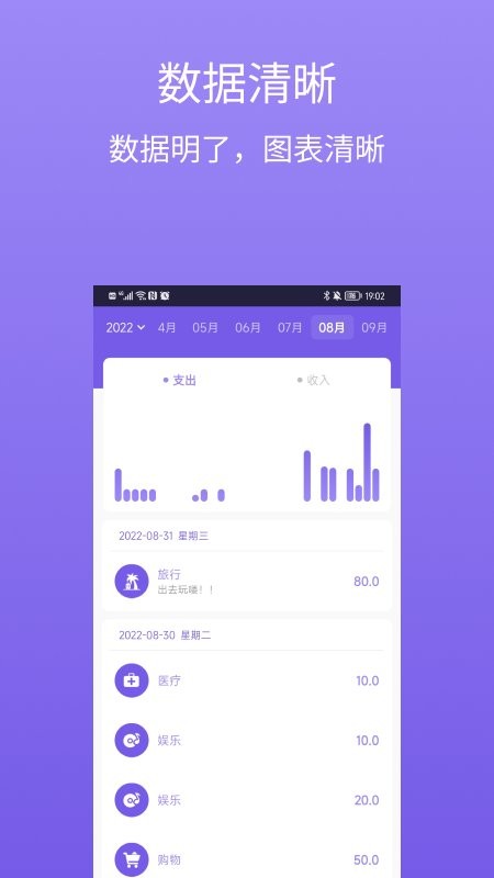 3.消费图表,简单图表,一目了然控制预算,及时调整并指定月消费指数。