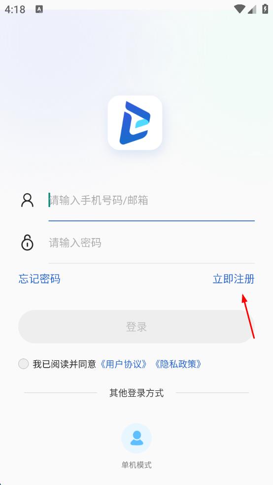 2、在登录页面,点击“立即注册”选项,进入用户注册页面。