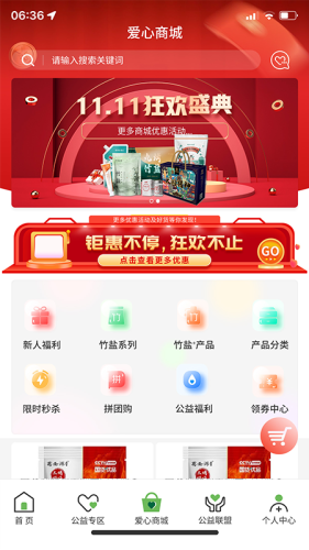 3、公益商城:健康产品线上就可以购买,让用户可以买的放心、使用安全。