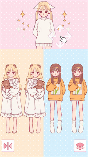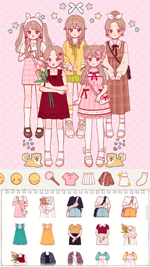 1、在这里你可以自由搭配各种服装配饰,风格多变,各种贴纸也可以自由拖动。