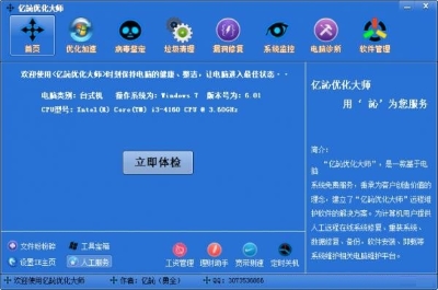 *可以对系统进行优化,扫描搜索电脑的漏洞和病毒,对系统运行速度提高。