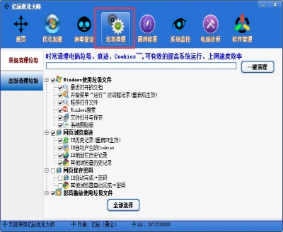 软件支持对电脑进行一键扫描垃圾,可以全面扫描电脑,清理系统的垃圾文件和注册表。