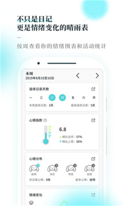 每天坚持记录,你会看到按周(月)绘制的心情温度曲线。