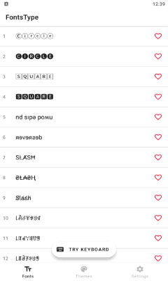 FontsType安卓版是一款可以为用户提供各种各样的键盘、字体的优秀软件,这些键盘和文字都有着多种多样的样式,数量丰富。该软件可以支持多种机型,方便用户随意使用,并且还拥有着许多有趣的符号和表情包,为用户在平时聊天时使用,增加乐趣。