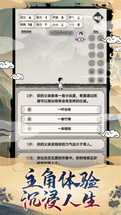 吕布重生模拟器手游是一款以三国时期为背景的人生模拟游戏,你这一生要体验的就是吕布的一生,在三国时期的动荡年代,你将遇到挚友,保护她,并规划你的策略,改写三个奴隶的命运,带给你身临其境的体验,非常的有趣,快来下载试试吧。