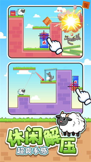 最怂大脑手游是一款救羊射击游戏,玩家只需要手指轻触手机屏幕瞄准狼,松开手就能给狼致命一击,子弹的物理弹射将击中坏狼,但玩家要小心子弹自射哦,游戏还结合了心理学和逻辑学知识,让玩家在解决问题的同时探索内心的恐惧和勇气,如果你感兴趣的话,就快来玩玩看吧!
