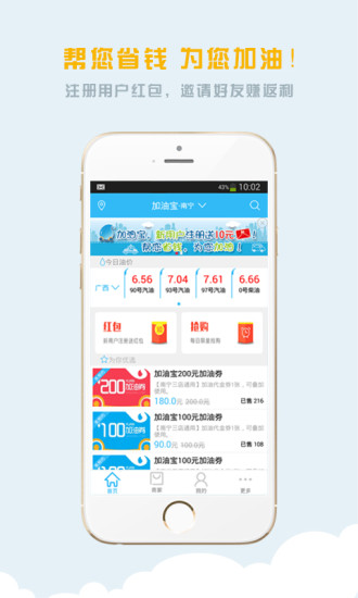 “驾驰加油宝”是一款用于汽车加油的手机APP,可以为广大车主提供在线团购加油服务。目标是帮您省钱,为您加油!