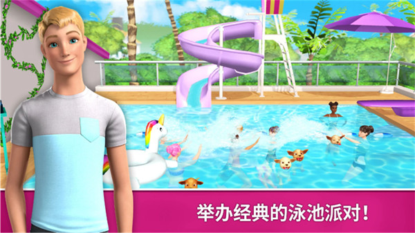 芭比时尚魔法手游是一款芭比主题的游戏,玩家可以和自己的小伙伴一起做超级多新颖的活动,装饰自己的梦幻小屋,游戏采用的是基础的粉色系,城堡内的房间有很多,玩家可以自由的装扮每一个房间,设计成自己喜欢的样子,还能举办泳池派对哦!