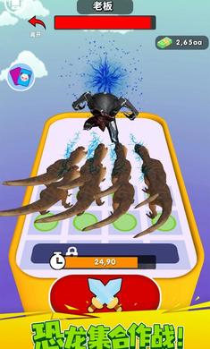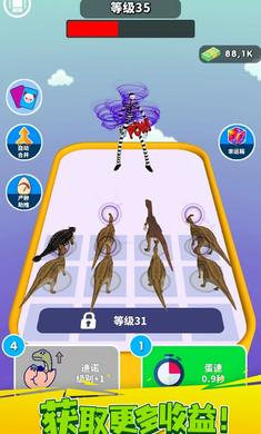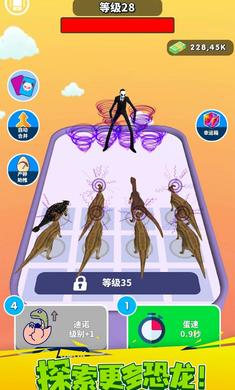 放置恐龙融合游戏有很多地恐龙,你可以将恐龙进行销毁,合成更高级地恐龙,很多地人会变成统治者,你可以有很多地简单设置,帮助你更好地游戏,发明新的物品,将自己变的更强大,不断地进行发展,成为最强。