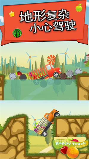 1、操作十分简便。虚拟方向盘设计使其行车更加方便,指尖操控使其行车更加轻松,把指定水果送到指定地点。