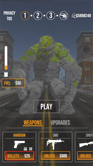 3、在购买好足够的子弹之后,只需要点击屏幕之中的【play】按钮即可进行射击冒险;