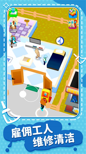 【雇佣员工】也可以雇佣一些员工来为您的房子照看,让它成为一个园子吸引众多客户,选用不同的装潢来营造房子。