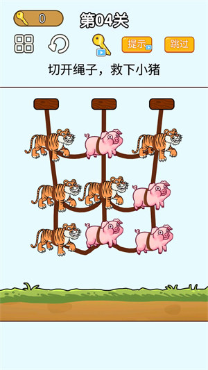 2、一定要注意哦,游戏中我们需要救下的是小猪,而不是被绳子捆绑起来的老虎哦,老虎是很危险的。