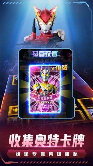奥特曼集卡大作战游戏是一款以奥特曼为主题的抽卡游戏,玩家可以在游戏中看到很多自己熟悉的奥特曼,很多的奥特曼的实力是很强的,玩家可以自由的提升卡牌的实力,还可以根据卡牌的实力来进行有趣的组合对战,玩法是非常有趣的。