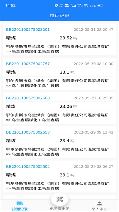 本app主要向鄂尔多斯境内煤矿拉运的司机提供实名注册认证通道、车辆添加、车辆变更、车辆注销等功能,提供司机拉运过程中出示司机码或电子煤管票进行出入矿凭证,提供鄂尔多斯市能源局统一管理拉运司机的功能,提供煤检站查验司机过站携带电子煤管票以及历史拉运记录信息查验等功能