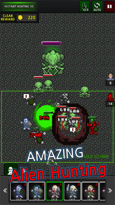 玩家可派僵尸角色袭击人类,在其袭击的过程中,可采集金币做为一种资源,金币资源可用于提升技术系统的等级,提升之后可持续培养僵尸的能力,这里的人类角色就是以敌人的身份出现,带给玩家一种新鲜的感受。