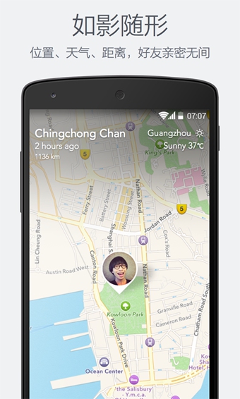 直观明了地知悉你的好友位置、天气及心情,无论身处何地,都能亲密无间