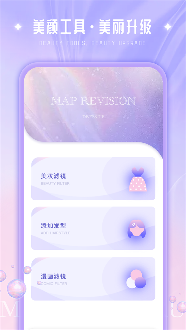 1、界面简单,全新的设计语言,日常中不断地更换妆容,在软件里进行修改。