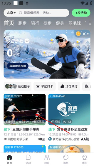 1、打开趣动APP,点击底部活动,进入活动页面。