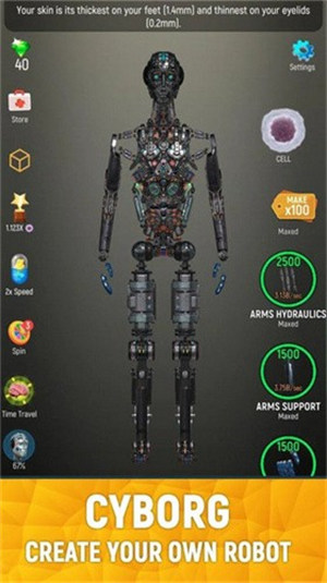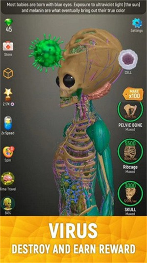 放置人类游戏是一款人体改造升级小游戏,玩家在游戏中将会观察游戏中的人物的身体结构,对他进行有效的改造,打造出独属于我们自己的完美身体,游戏中玩家将会从多个角度观察人类的身体,有助于我们更加的了解我们自己的身体。