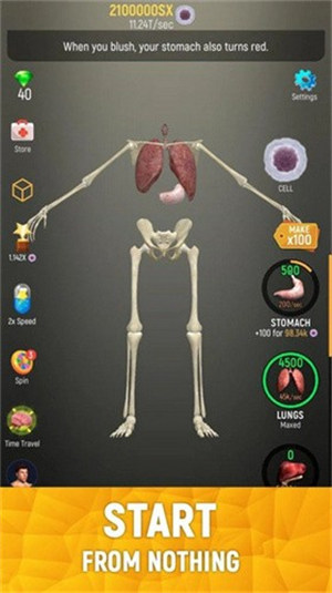 1、种类繁多的人体模型让玩家在游戏里自由摆放多种人体器官打造自己最强大的人。